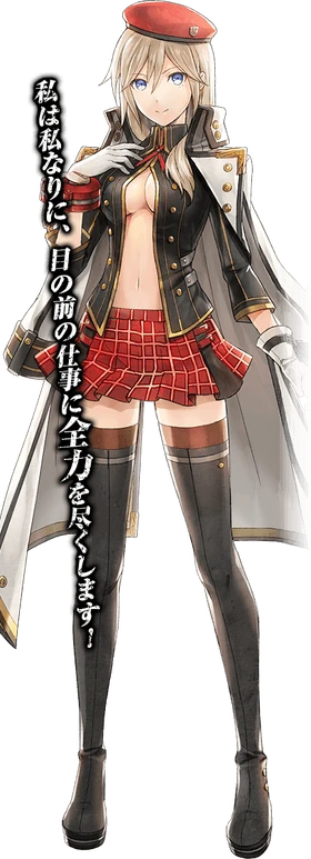 Alisa's appearance becomes more mature, and she appears to be significantly taller as well. While her outfit's style is overall the same as before, and she still keeps the red beret, red skirt and black boots, she has replaced her white Cradle jacket with a black Fenrir uniform that still exposes her cleavage, and also uses white gloves.