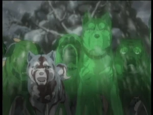 His spirit appears with the spirits of other Ōhu armys to support Weed in his duel against Hōgen. He takes Weed's place for a moment as Hōgen bites the puppy.