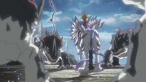 Allies: Patamon (Seraphimon) | Salamon (Ophanimon) | Lopmon (Cherubimon)| Swanmon | Oryxmon | AncientGreymon | AncientGarurumon | AncientBeetlemon | AncientKazemon | AncientMegatheriummon | AncientWisemon | AncientVolcanomon | AncientTroiamon | AncientMermaimon | AncientSphinxmon | Datamon | Zanbamon | Gryphonmon | Pteramon | Mercurymon | JetSilphymon | GranKuwagamon | Gryphonmon | Grumblemon | Ten Legendary Warriors | Celestial Digimon