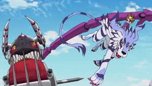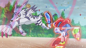 Allies: BlackWarGreymon | Deputymon | Azulongmon | Catherine Deneuve | Floramon | Michael | Betamon (Seadramon) | Derek | Crabmon (Coelamon) | Dien | Gorillamon | Lou | Tortomon | Yue Hong | Apemon | Poi Brothers | Syakomon | Mina | Meramon | Rosa | Gotsumon (Monochromon) | Anna | Unimon | Yuri | Kuwagamon | Sonya | Snimon | Maria | Centarumon | Phil | Flarerizamon | Steve | Dolphmon | Frigimon | Tatum | Airdramon | Tyrannomon (Species) | Chikara Hida | T.K.'s Son | Mimi Tachikawa's Son | Ken and Yolei's Son | Cody Hida's Daughter
