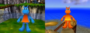 A purple Jinjo is a playable character in this game. It has very low top speed, but four points of acceleration and five points of handling. The player also races against seven Jinjos in the unlockable Jinjo Grand Prix.