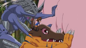 Allies: BlackWarGreymon | Deputymon | Azulongmon | Catherine Deneuve | Floramon | Michael | Betamon (Seadramon) | Derek | Crabmon (Coelamon) | Dien | Gorillamon | Lou | Tortomon | Yue Hong | Apemon | Poi Brothers | Syakomon | Mina | Meramon | Rosa | Gotsumon (Monochromon) | Anna | Unimon | Yuri | Kuwagamon | Sonya | Snimon | Maria | Centarumon | Phil | Flarerizamon | Steve | Dolphmon | Frigimon | Tatum | Airdramon | Tyrannomon (Species) | Chikara Hida | T.K.'s Son | Mimi Tachikawa's Son | Ken and Yolei's Son | Cody Hida's Daughter