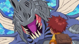 When Koshiro concludes that the Tylamon are being controlled by a nearby Soundbirdmon and determined to protect his friend, Tentomon evolves into Kabuterimon to destroy the Soundbirdmon and break the Tylamon free from its control. After destory Soundbirdmon, Kabuterimon and Koshiro flying to meet Taichi and others.