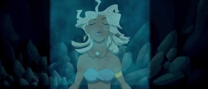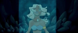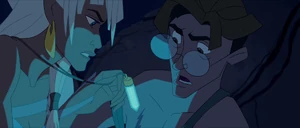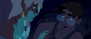 Kida noticing her mother being hypnotized by the Heart of Atlantis.