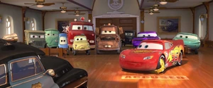 Fabulous Lightning McQueen with Sally, Cruz Ramirez and the other residents at the Flo's V8 Café.