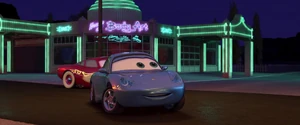 McQueen has a dinner with Sally at Wheel Well which is now a restaurant.