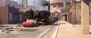 When the race car questions his whereabouts, Mater tells him he's in the town of Radiator Springs.