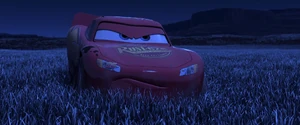 McQueen suddenly becoming disappointed when he finds it wasn't Mater.