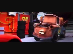 When McQueen arrives in the pits, a scared Mater quickly drives off, warning McQueen to stay away from him.