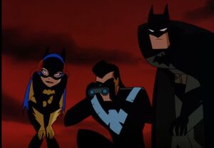 Witnessing Batman's harsh interrogation of one of the Joker's accomplices, Robin felt he was beginning to cross a line and tried voicing his frustration to Barbara though he could not as she did not know his identity until then, only discovering it shortly after visiting Bruce to ask him about the growing rift between him and Dick and the former reveals their secret identities.