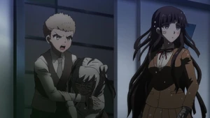 At the beginning of the episode, in the flashback, Peko attacked the leader of Future Foundation, Kazuo Tengan upon Fuyuhiko's orders. However, Kyosuke Munakata came to Kazuo's defense, holding off the Ultimate Swordswoman of Despair with his own katana. Despite being reinforced by Nekomaru and Akane, Peko was eventually captured by the Future Foundation along with the other Remnants of Despair.