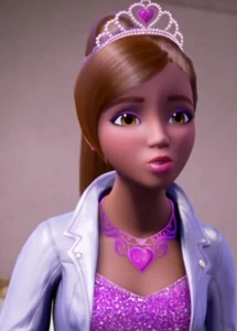Princess Genevieve is a supporting character in the 2015 direct-to-video animated Barbie film, Barbie in Rock 'N Royals. Genevieve has dark skin, brown eyes and brown hair. She wears a long purple ballgown with a white jacket, and purple heels. She has a purple crown, purple earrings and a heart-shaped purple necklace.