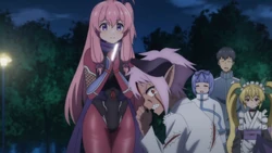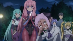 Shizuri with the other ninjas outside of Tsukasa's apartment.