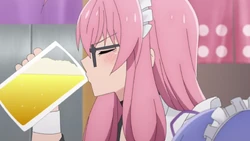 A drunk, uninhibited and childlike Shizuri excited to see her mother during the drinking party.