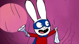 Images of the little rabbit superhero Simon (AKA Super Rabbit), from the series of the same name.
