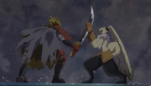 Digivolution: GeoGreymon | RizeGreymon | ShineGreymon | Gaogamon | MachGaogamon | MirageGaogamon | Sunflowmon | Lilamon | Rosemon | Peckmon | Crowmon | Ravemon | Reppamon | Chirinmon | Kentaurosmon | KnightChessmon (Black) | RookChessmon | KnightChessmon (White) | BishopChessmon | Gwappamon | Shawjamon | Aquilamon | Garudamon