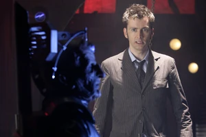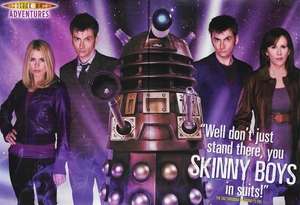 During one adventure, the Doctor discovered that the entirety of planet Earth had been taken from its orbit, but was able to trace it to the Medusa Cascade where he discovered the Daleks were responsible, which were created by Davros, who was saved from the supposedly impenetrable Time War by Dalek Caan. The Daleks were following a plan devised by Davros to construct a Reality Bomb capable of wiping out everything else in the universe besides the Daleks. Returning to Earth, the Doctor was attacked by Daleks and wounded, but when he started to regenerate the Doctor instead only healed his wounds and channelled the rest of his energy into the severed hand he had lost in his encounter with the Sycorax. The Doctor also reunited with Rose, who was able to cross into his universe again thanks to the dimensional boundary weakening as a side effect of the Daleks' plan. The Doctor and Rose were later captured by the Daleks, and escorted to the immense Dalek vessel known as the Crucible; while Donna was trapped inside the TARDIS and dropped into the Crucible's core, which was made of Z neutrino energy (destructive to TARDISes), on order of the Supreme Dalek, seemingly perishing. In fact, Donna was saved by touching the Doctor's hand, which regenerated into the Meta-Crisis Tenth Doctor and moved the TARDIS away just in time. With the Time Lord knowledge she had absorbed from the Doctor, which was inadvertently triggered by Davros' electrical strike, Donna was able to hack into the Daleks' mainframe and stop the activation of the Reality Bomb. It is revealed that Dalek Caan, driven both insane and granted universal perspective, had been secretly aiding the Doctor and his allies (including manipulating events to cause the Doctor and Donna to reunite), because Caan came to the conclusion that the Daleks were evil and a blight on existence. Dalek Caan's condemnation of the Daleks and urging to stop them permanently convinces the Meta-Crisis Doctor to use the Crucible system to destroy every Dalek; the Doctor and companions had to flee because the reversal of charge was eventually destroying the space station itself. However, deeming what the Meta-Crisis Doctor did as a "genocide", the Tenth Doctor banished him to Rose's universe right before the dimensional wall went back up; yet, his judgement to the Meta-Crisis Doctor was also himself finding a way to reciprocate Rose's feelings, as the part-human replica held all of their memories, and therefore affection, as well as having a human life span, thus wouldn't be condemned to an eternity alone when Rose does pass. The Doctor then discovered that Donna's mind was being overrun by the wealth of Time Lord knowledge she had absorbed, and so reluctantly suppressed all of her memories of him in order to save her.