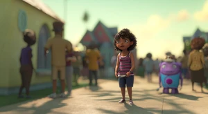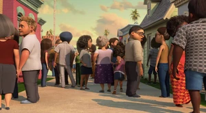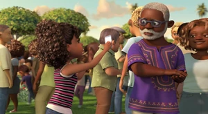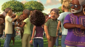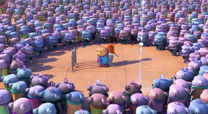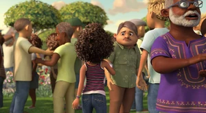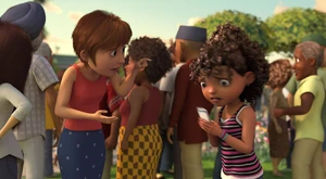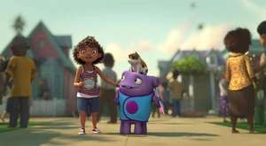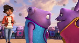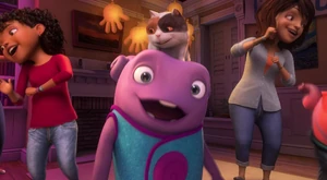 Tip, Lucy, Oh Kyle and the Boov and people dancing.