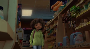 Tip and Pig-Cat take cover in store known as The Mopo.