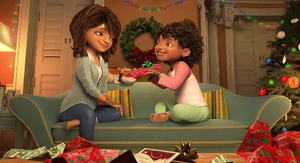 Tip holding a Christmas present