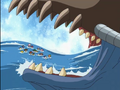 Whamon swallows DigiDestined and their partners on their way to the Server Continent. Inside his stomach, they find a Black Gear and destroy it, returning Whamon back to normal. In order to thank them, Whamon transports them to the continent.